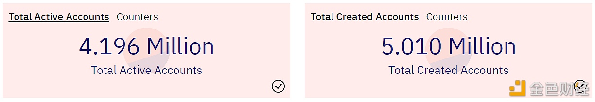 据Dune Analytics最新数据显示,以太坊Layer 2网络Arbitrum链上已创建账户总量突破500万,本文撰写时达到501万个,其中活跃账户总量为419.6万个,占比约为83.75%。此外,当前Arbitrum链上锁定总价值约为57.97亿美元,合约创建总量约为203万个。