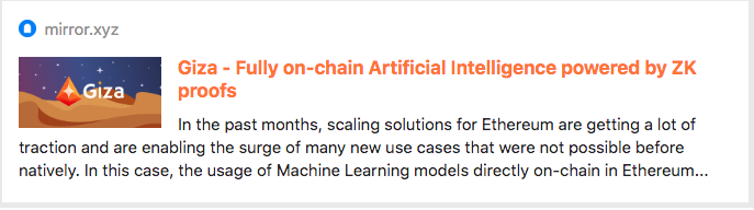 Giza - Machine Learning in the Blockchain: