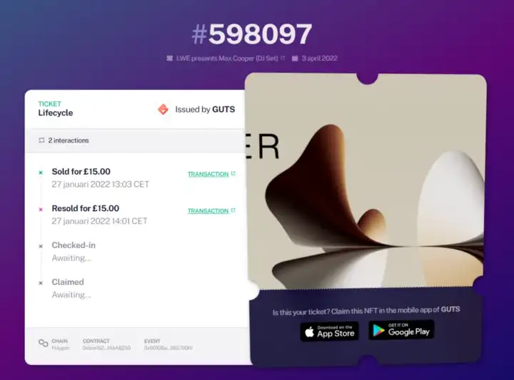 创立于阿姆斯特丹的 GUTS 首先在荷兰国内取得了成功。2018 年 9 月,他们在三个小时内为荷兰喜剧演员 Jochem Myjer 的演出售出了 5 万张门票,一度成为荷兰最受欢迎的移动 App。2021 年,荷兰著名歌手 Guus Meeuwis 的演出因为疫情缘故在开演前不得不转移场地。根据以往纸质门票的经验,由于不透明的转售情况存在,票务商几乎不可能逐一通知到用户,而用户拿着印有错误时间、地点的门票一定会造成混乱。但是这次,票务承办商使用了 GUTS 的方案,他们“只需要点击按钮就可以更新演出信息并通知到每个客户端 App”,从而轻松化解了危机。这样的经验使得 GUTS 拥有了遍布欧美的客户,而且不仅是演出,还拓展到了体育活动等场景。