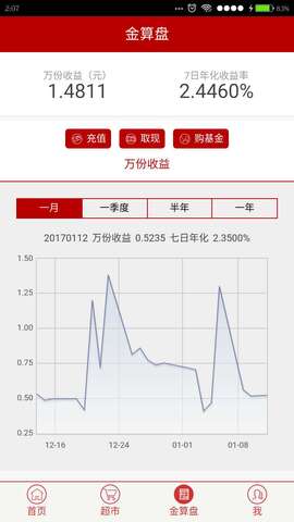 3、选择金算盘,能够线上了解到详尽月收益或者季度及其年收益等;